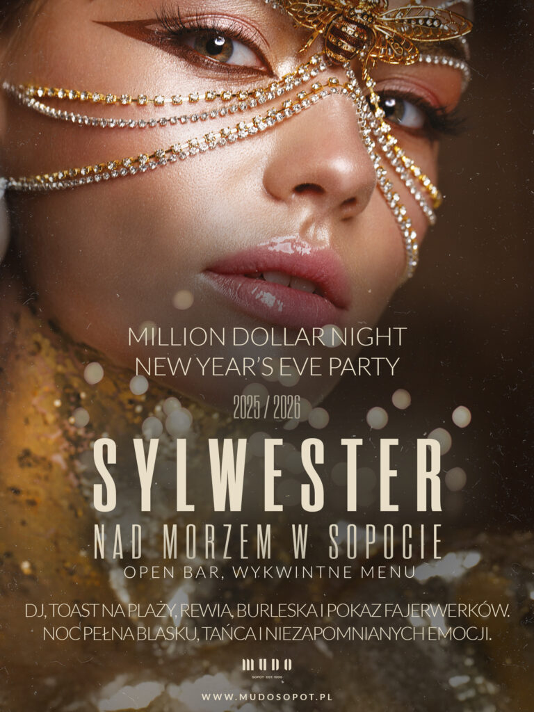 Powitaj Nowy Rok w obiekcie Mudo na sopockiej plaży, wśród szumu fal ,fajerwerków, złotego blasku i marzeń o nowym, jeszcze piękniejszym początku.